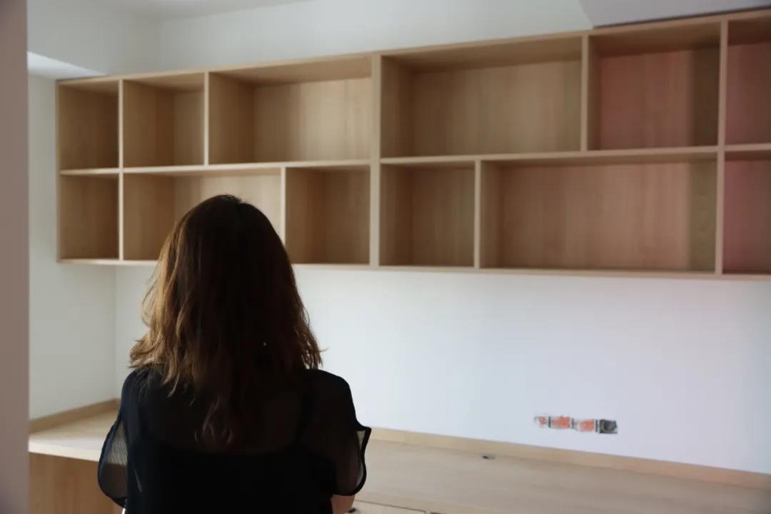 这个工地上定制了许多柜体,而重庆最近天气湿度很高,温度也高,在这种环境下,木质柜体很容易发霉、变形,造成柜体损坏。为排查这种情况,设计师赵亚飞对房间内已经安装好的柜体进行了逐一检查和确认,保证柜体不会出现问题。